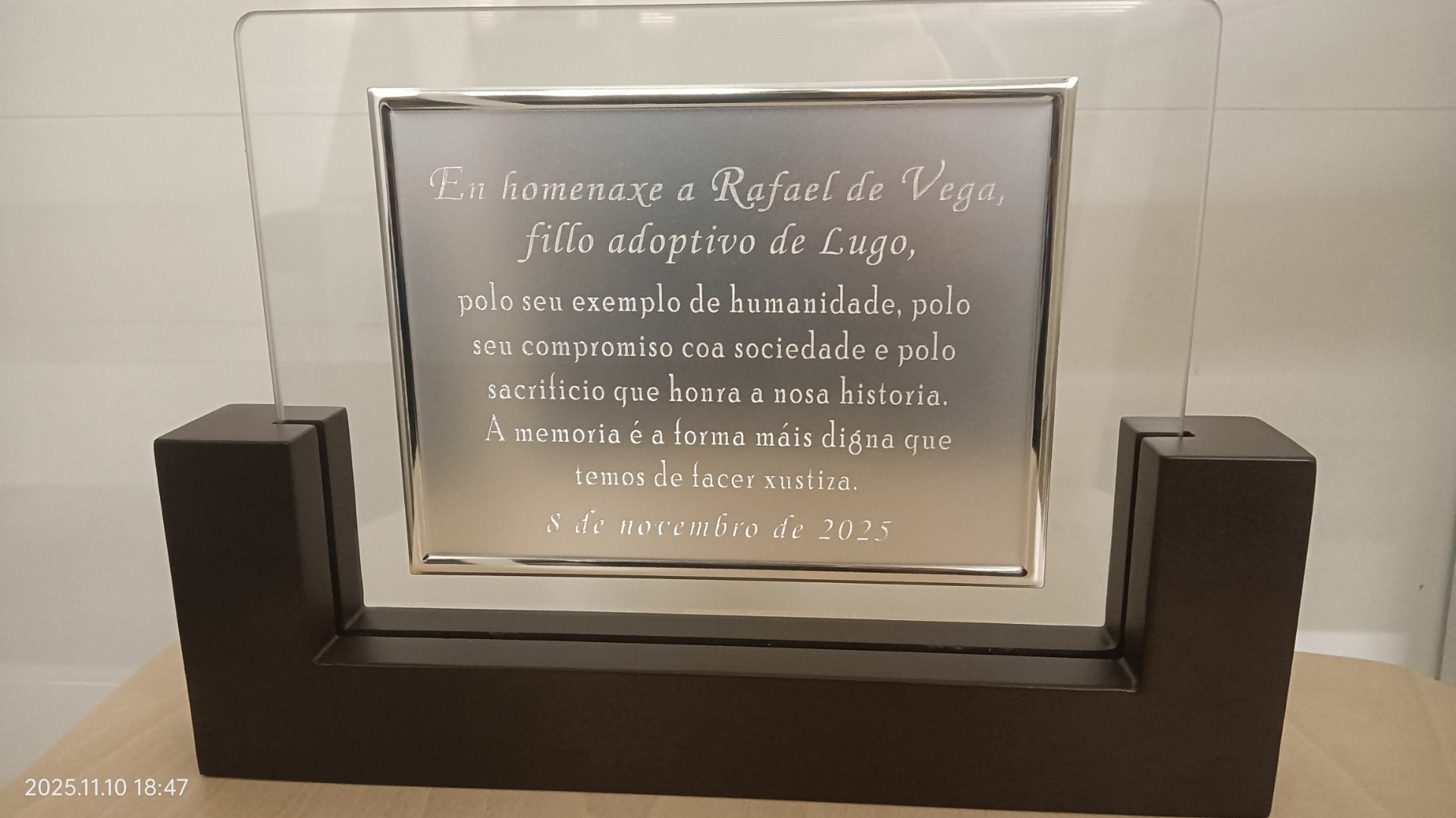 Lugo nombra hijo adoptivo al doctor Rafael de Vega Barrera en un emotivo acto el día 8 de noviembre de 2025, en el centro sociocultural "O Vello Cárcere" de Lugo.