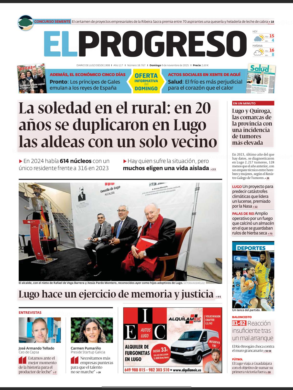 Doctor Rafael de Vega Barrera: nombramiento de hijo adoptivo de Lugo. Lugar: "O Vello Cárcere" (Lugo). Fecha: 8 de noviembre de 2025. 12 horas.